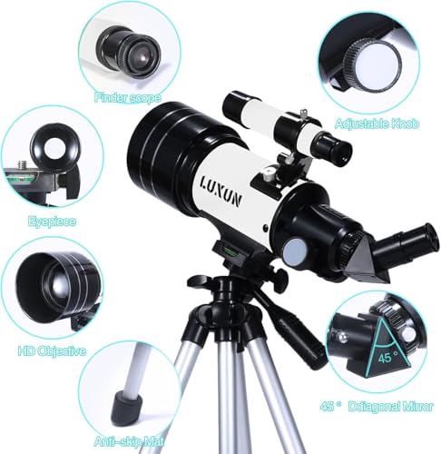 Astronomical Telescope,70mm Refracting Telescope with Multilayer Broadband Coating(15X-150X),Adjustable Tripod and Finderscope,Telescope for Adults,Kids and Beginner