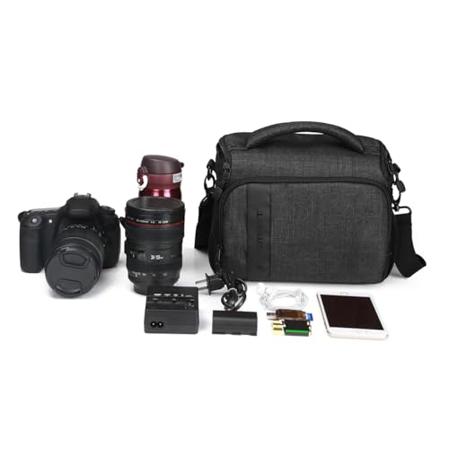 BAGSMART Camera Shoulder Bag, Camera Messenger Bag Anti-Shock with Waterproof Rain Cover for SLR/DSLR, Lenses, Accessories, Grey