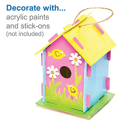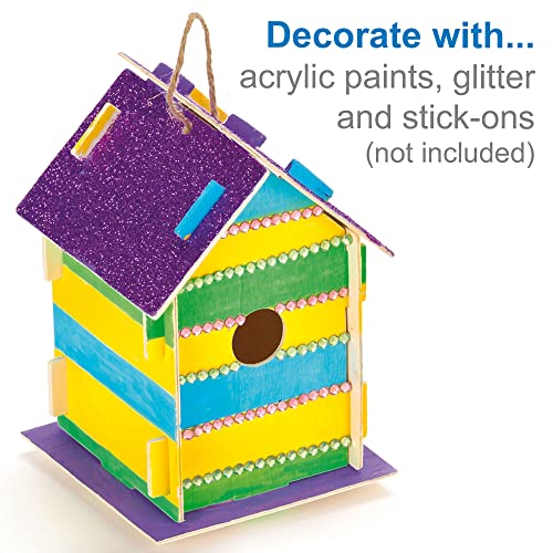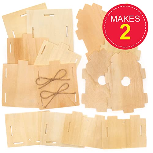 - Included in the Pack: This pack contains 2 kits. Each kit contains pre-cut wooden pieces, hanging cord and instructions. Assembled birdhouse height 17cm. For ages 5+