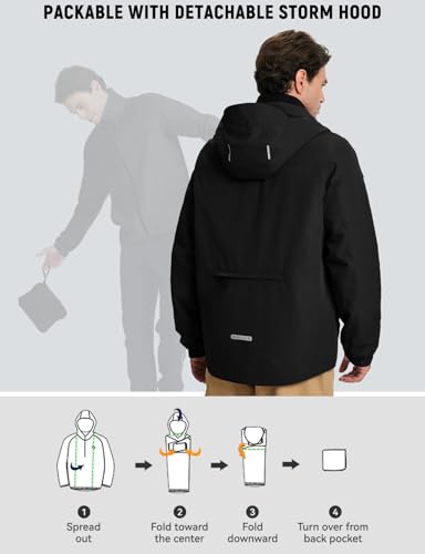 baleaf Men's Fleece Lined 3 in 1 Outdoor Waterproof Jacket Packable Cycling Jackets Running Rain Coat Black L