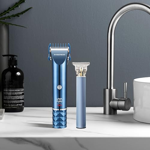 BarberBoss Cordless Hair Clippers for Men – Beard & Hair Trimmer Set with LED Oil Display, 8 Comb Attachments, Precision Blades for Face and Hair Grooming