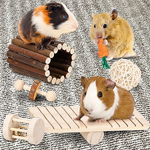 BBjinronjy Hamster Chew Toys Set Small Animal Molar Toys Teeth Care Wooden Accessories for Guinea Pigs,Chinchillas,Gerbils,Mice,Rats,Mouse Rodents Toy Swing Seesaw Bridge
