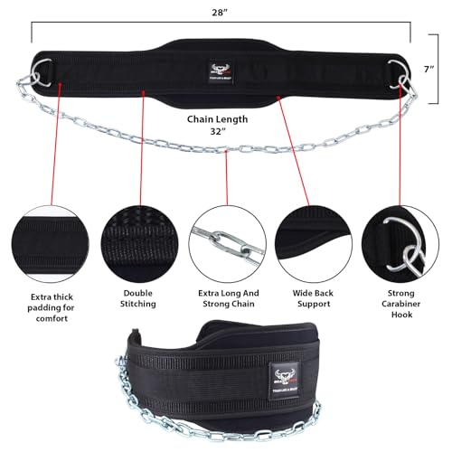 - Heavy duty dipping belt with steel chain is secured with the heavy duty D ring attachments which never stretches and helps to add or remove weight easily. Relatively durable and non-slip, this neoprene dip belts when you need it most during your gym routine.