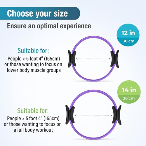 - TWO SIZE OPTIONS FOR CUSTOMISED COMFORT: The 12-inch ring is ideal for individuals under 5 foot 4” (165cm) or those focusing on lower body muscle groups, while the 14-inch ring is tailored for individuals above 5 foot 4” (165cm) seeking the perfect fit for full body workouts.