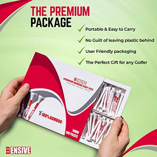 BENSIVE Golf Tees Bamboo 70mm –50 Pcs Sturdy, Biodegradable, Sustainable Wooden Golf Tees with Height Markers & Curved Top for Reduced Friction – Ideal for Beginner & Professional Golfer White(50)