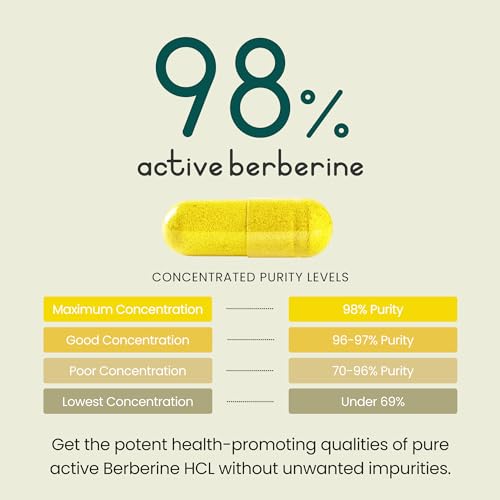 PURE BERBERINE POWDER: This supplement contains root extract of berberine that is 98% purity, the purest berberine extract to be had and far stronger than most alternatives. It is in a plant-based capsule with no artificial additives at all.