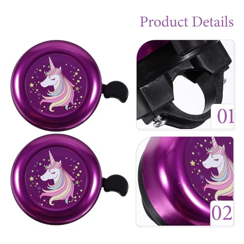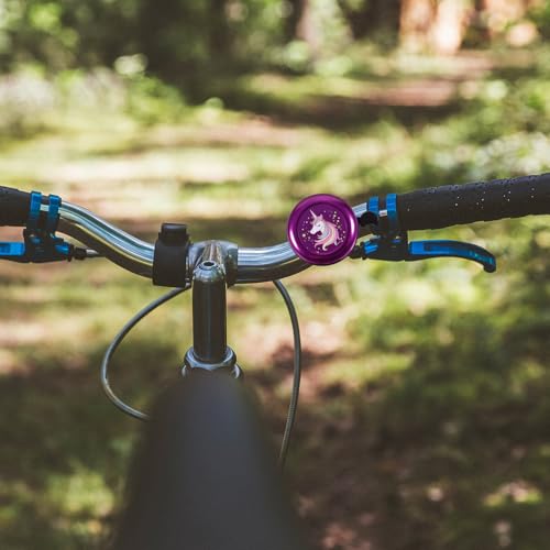 BESPORTBLE Unicorn Kids Bike Bell Loud Crisp Sound – Easy-Press Toddler Bicycle Bell Gift for Girls Ages3-12 – Purple Aluminum Alloy Safety Accessories for Scooter Balance