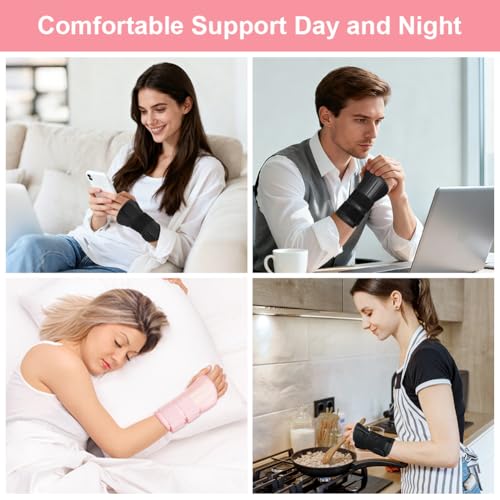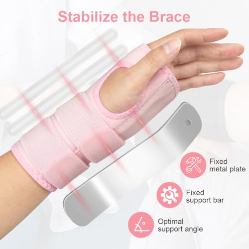 Beugo Carpal Tunnel Wrist Support Brace, Adjustable Wrist Strap Carpal Tunnel Compression Splint with Metal Splint Stabilizer, Hand Support for Arthritis Tendonitis, Sprains (Right Hand, Pink)