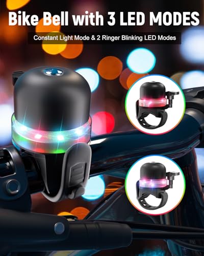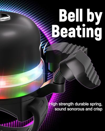 Bike Bell Bicycle Bell with RGB Lights: Crisp Loud Melodious Sound, Mini Bicycle Bell for Kids Adults Bike Horn for Road, Bike Accessories