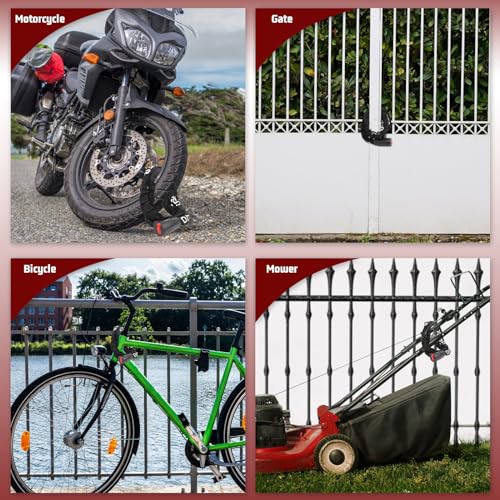 - 【Easy to Use & Versatile】: This digital code chain lock has a default code of 00000, you can easily set your own digital code according to the pictures or video steps we provide, the code is resettable. The chain is 3.9 feet long and can lock 2-3 bikes at the same time, or multiple chain locks can be linked together if you want to lock something thicker, the lock can also be used for motorcycles, scooters, skateboards, grills, ladders, doors, lawn mowers, etc.