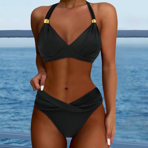 - Trend-Forward Bikini Design: Stylish two-piece swimsuit set featuring high-waisted bottoms and coordinating tops with removable padding. Modern color-block patterns and adjustable tie-details create customizable coverage