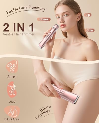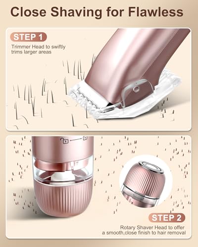 - 【Versatile Bikini Trimmer】: The electric shaver for women features an innovative dual head design that combines the functions of a body and facial shaver.There is no need to change the cutter head frequently.It can accurately and smoothly remove hair from the face,body and bikini areas.