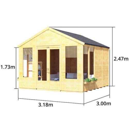 BillyOh Holly 10×10 Apex Summer House Shed, Log Cabin | Spray Treated – Garden Room with Wide Double Doors, Storage Shed, Tongue and Groove Construction | Versatile Tiny Home for Garden Office