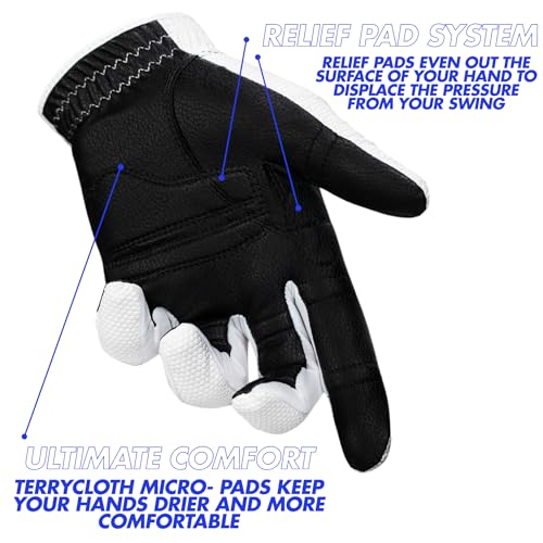 Bionic Gloves Men's RELAXGRIP 2.0 Golf Glove, White and black, S