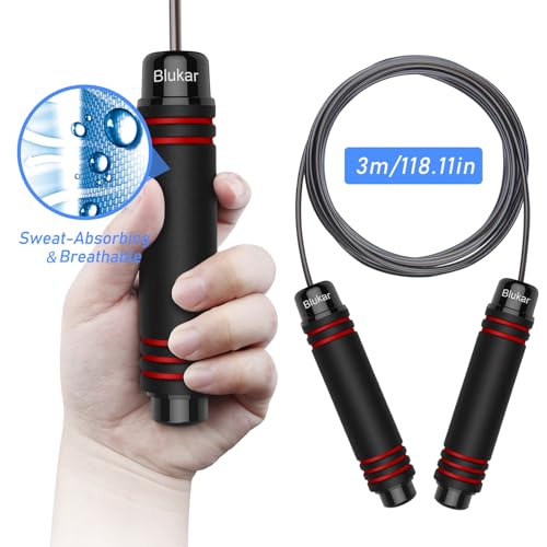 - Strong and Durable Rope: Blukar skipping rope is made of high quality steel wire and covered with a strong PVC outer layer material, which can be durable even after a long period of exercise. Wear-resistant, stable and non-floating wire rope can ensure long service life and prevent wear.