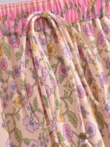 Boho Maxi Skirt Summer Casual Skirts for Women Long Floral Flare Flowy Gypsy Hippie Bohemian Style (UK, Alpha, S, Regular, Regular, Pink)