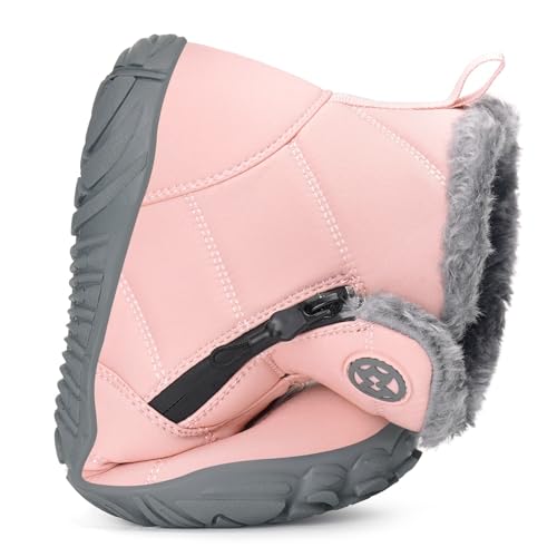 Boots for Men Women Winter Barefoot Shoes Non-Slip Warm Fur Lined Snow Boots Wide Toe Box Outdoor, Pink, 4 UK