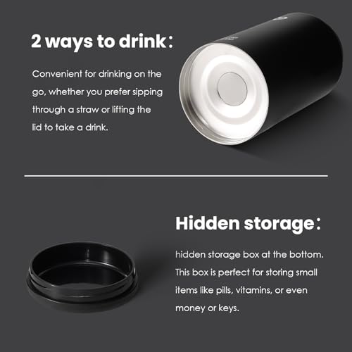 - Storage Space:There is a storage space at the bottom of the 64 oz water bottle that can be swiveled open. You can use this space to store pills and vitamins, even coins and keys