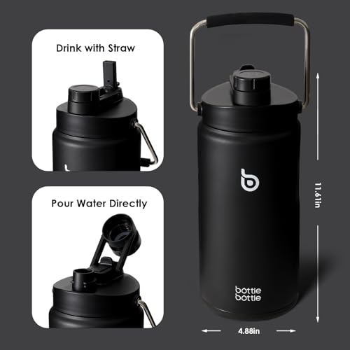 Bottle Bottle Insulated Water Bottle 2L with Straw and Dual-use Lid Half Gallon Water Jug Vacuum Stainless Steel for Workout and Sports Insulated Beer Growler with Handle(Black)