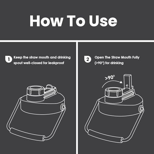 - Dual-use Lid:Our half gallon water bottle have a dual-use lid,not only you can drink through the straw lid directly but also can twist the cap to pour the water.What’s more,the big handle can help you go to sports conveniently