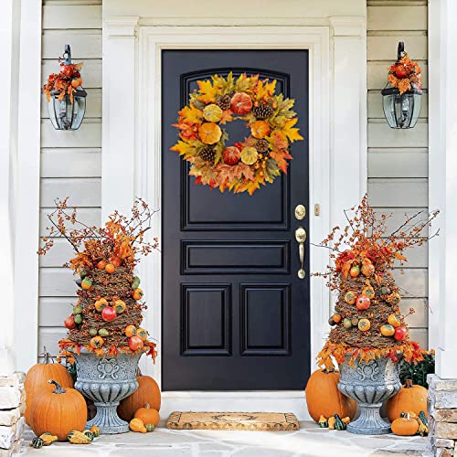 - 【Front Door Wreaths for Autumn】Let your home shine in the colors of autumn – with this pumpkin autumn wreath with maple leaves and pinecons. While natural foliage dries out and turns brown within a very short time, this pumpkin wreath artificial keeps its colors in the long run.