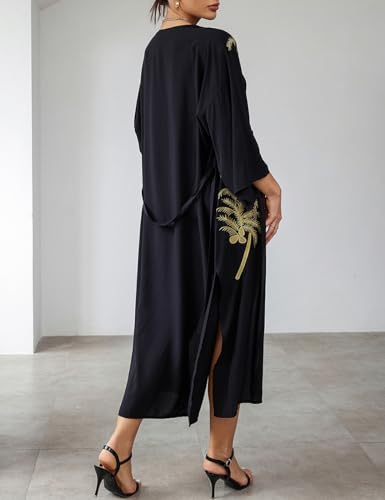 Bsubseach Long Kimonos for Women Casual Cover Ups for Swimwear Gold Embroidery Swimsuit Coverup with Belt