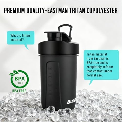 - 【Tritan Shaker Bottle】BuildLife Shaker Bottle is made of Eastman Tritan Copolyester, it's more safe, Food Grade and BPA free, so every bite you drink is pure and healthy even after a long time of use. However, most of shaker cups on the market are made of PP. So you get what you pay for!