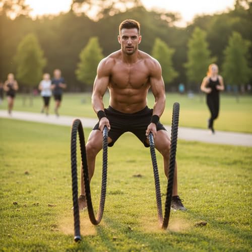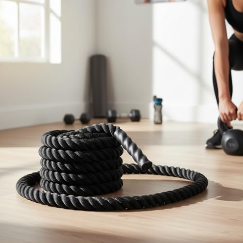 BURAKH 6M /9M /12M Battle Ropes, Battle Rope for Strength Training – 38mm Heavy Duty Gym Rope for Cardio & Full Body Workout (38 mm/12 m)