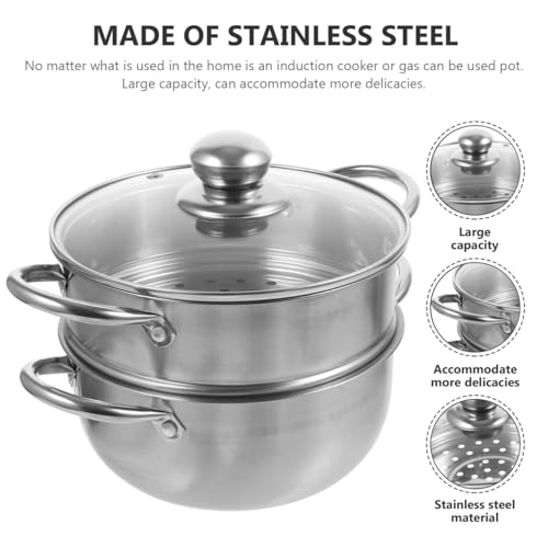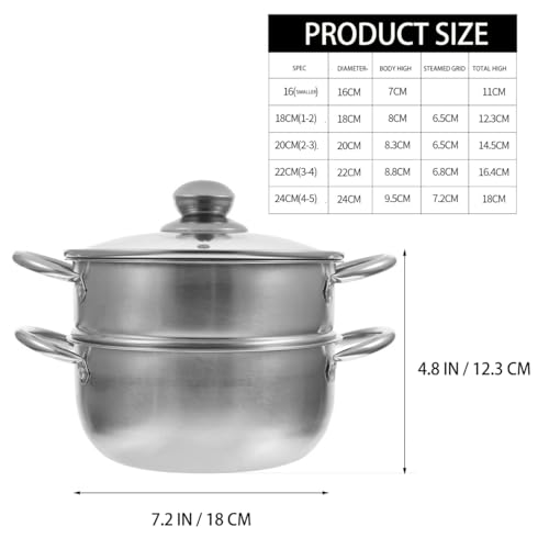 Cabilock 2 Tier Stainless Steel Steam Pot with Glass Lid, 18cm Small Food Steamer Pan, Induction Steaming Cookware Food Basket Saucepan for Cooking Dumplings Vegetables