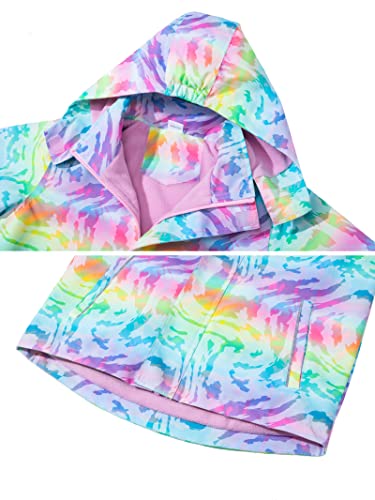 CAMLAKEE Girls Waterproof Jackets Kids Raincoats FLeece Lined Printed Hooded Coat Outdoor Windbreaker Pink UK:5-6 years (manufacturers's size: 120)