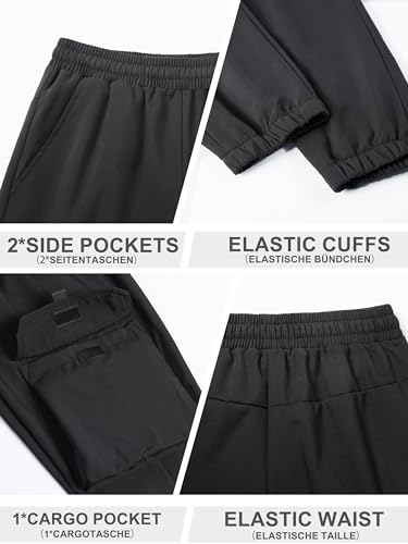 CAMLAKEE Kids Softhell Hiking Trousers Boys Waterproof Outdoor Cargo Pants Walking Jogging Bottoms with Elastic Waist Black UK:12-13 Years (manufacturers's size: 160)