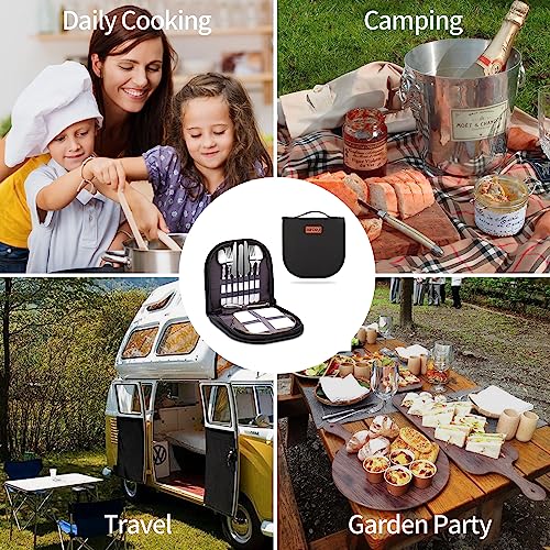 Camping Cutlery Set, Camping Silverware Kit Cutlery Organizer Utensil Picnic Mess Set,Travel Portable Fork Spoons Plate Set for Hiking, Picnic and Backpacking, Perfect for 1-2 Person