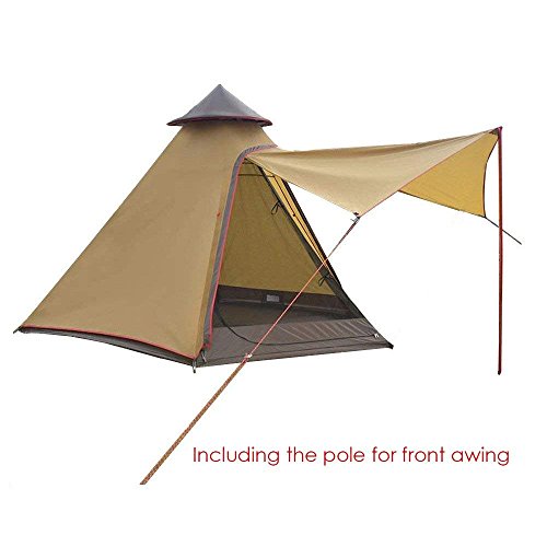 - TWO LAYERS including inner screen tent and outer fly sheet, both can be used independently. The inner screen tent keep from mosquito or bugs. Zipper doors allow you easy Entrance and Exit. The outside rain fly of tipi tent can be used as an awning.