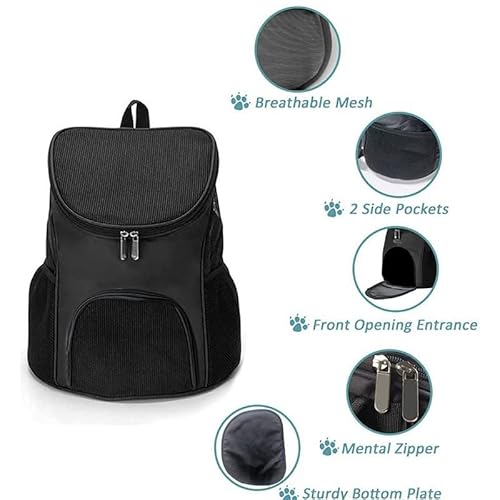 Cat Backpack Carrier Foldable Pet Backpack for Medium Cats Small Dogs Travel Front Bag with Breathable Mesh Window Hands-Free Cat Puppy Rucksack Carrier Bag for Outdoor Travel Hiking Fit Up 16lbs