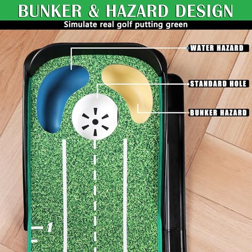 - Water and Bunker Hazard: Bunker and water hazards offer practice similar to real courses to improve putting skills.