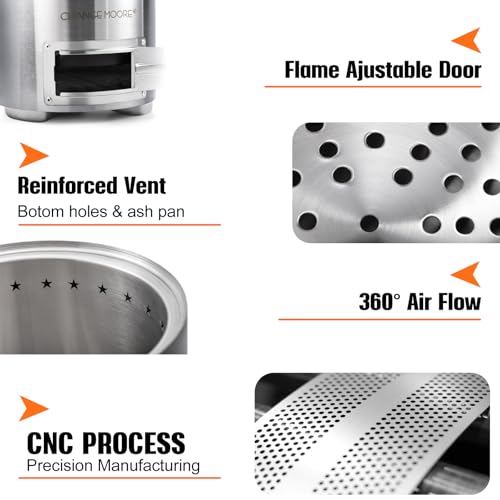 CHANGE MOORE Smokeless Table Top Fire Pit, Stainless Steel, Round, Modern, Fueled by Wood or Pellets, Flame Intensity Control, 8.8×7 Inch with Valve