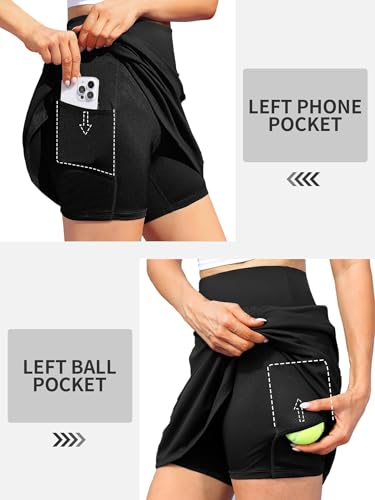 Charmo Athletic Skorts with Pockets Tennis Skirt with Mesh Lining High Waisted Golf Skirt for Women Black L