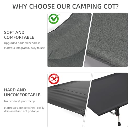 - 【Foldable and Compact Storage】 Effortlessly fold the cot for convenient storage and transport. The included portable bag makes it easy to carry and store, ensuring your camping cot is always ready for your next adventure.
