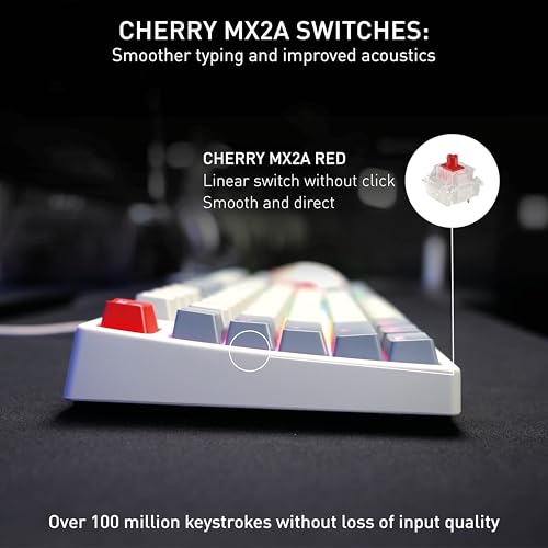 - High-quality mechanical CHERRY MX2A RED switches: Smooth and direct typing feel with linear switching characteristics (no click) and more than 100 million actuations per key
