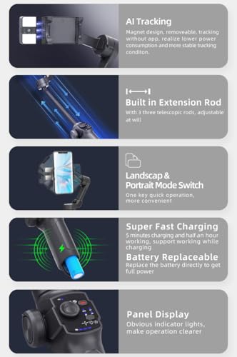 - 🔄 Switch Between Portrait & Landscape: Seamlessly transition between horizontal and vertical modes with a simple touch of a button. Ideal for content creators catering to various social media platforms and web pages with distinct aspect ratio requirements, this stabilizer ensures smooth and effortless switching, allowing you to capture the perfect shot for every platform.