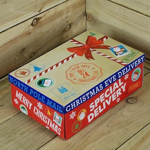 Christmas Eve Box for Kids – Large 32cm Special Delivery North Pole Mail Santa Gift Box with Lid – Reusable Cardboard Present Box for Xmas Eve Treats Pyjamas Chocolates Toys