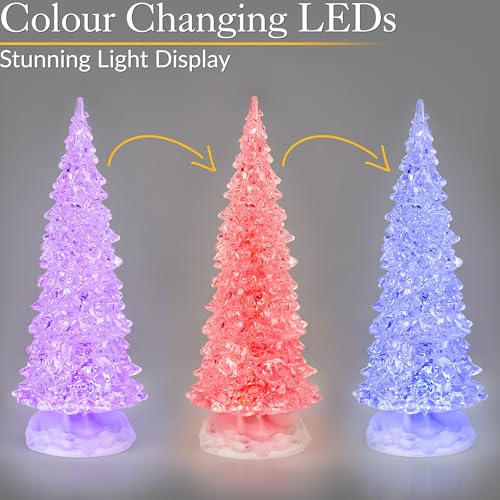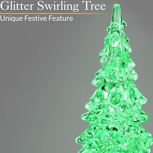 - SPARKLY WATER & COLOUR-CHANGING LED: The Christmas tree is made from clear acrylic, so you can clearly see the combination of water and glitter swirling around inside it. The colour changing LED glows green, purple, red, and blue. When the glitter water catches the light from the LED, it twinkles and sparkles to create a beautiful light display.