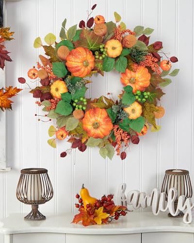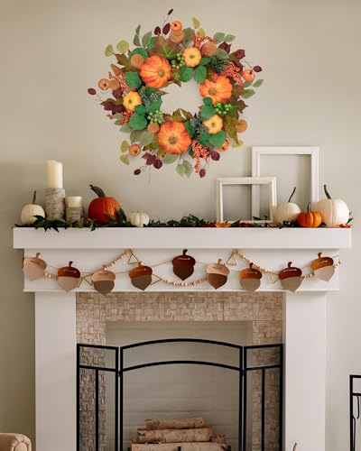 - 【Lifelike】 This autumn wreaths for front door uk is made of more than 3 types of maple leaves with different colors, and some berries, and it is additionally dotted with pumpkins, which makes it look more vibrant and natural. Autumn wreath keeps blooming and could be used for a long time.