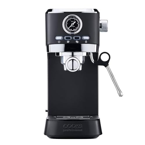 Cooks Professional 20 Bar Espresso Coffee Machine with Steam Wand, 1L Water Tank & Stainless-Steel Drip Tray | Compact & Stylish Barista-Style Coffee Cappuccino Latte Macchiato Maker | 1350W | Black