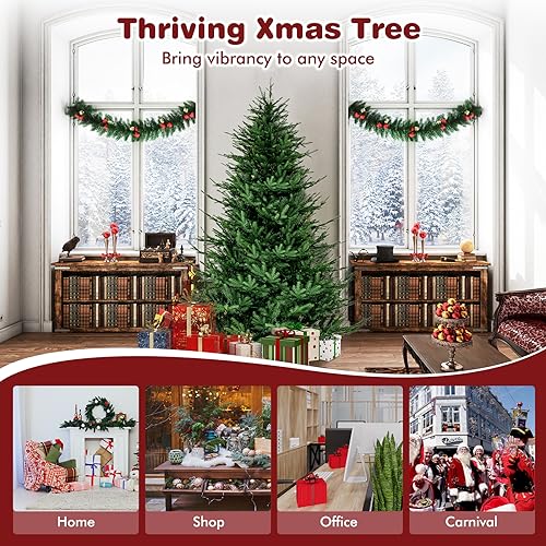 - 【Luxurious & Vivid Appearance】The 6ft artificial Christmas tree features 788 lush branch tips, providing a lifelike appearance that will impress your guests. Moreover, there exist 2 types of leaves, which are soft PE leaves and verdant PVC leaves, looking more realistic from near to far.