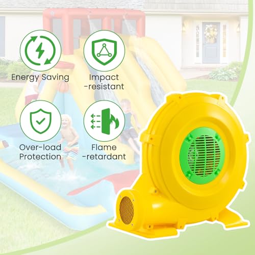 - 【Wide Application】Ideal for both personal and commercial use, this electric blower is a reliable, powerful companion for various inflatable needs. It is an essential tool to effortlessly inflate items like bounce houses, water slides, and holiday decorations.