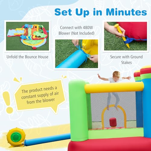 - 【Make Inflation & Storage a Breeze】This kids bouncy castle inflates in minutes (recommended for use with 480W blower, not included), ensuring a fast and easy setup process. After deflation, the carrying bag allows for convenient storage and transportation.