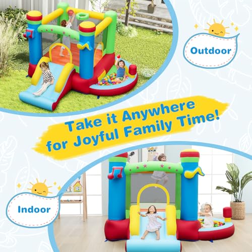 COSTWAY Kids Bouncy Castle, Inflatable Bounce House with Slide, Ball Pit, Basketball Hoop, Children Blow Up Jumper for Indoor Outdoor (without Blower)