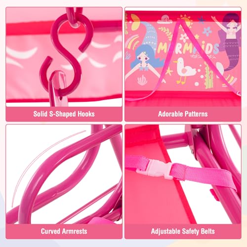 COSTWAY Kids Swing Chair with Adjustable Canopy and Safety Belts, 2 Seat Garden Toddler Swing Bench for Patio Porch Yard (Pink)