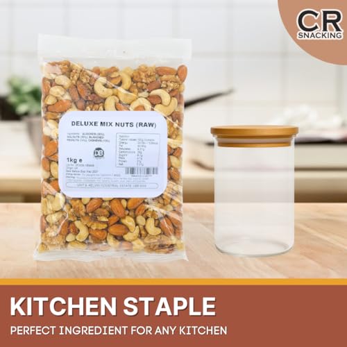 CR Snacking DELUXE MIXED NUTS UNSALTED (1kg) – Raw Cashews, Walnuts, Almonds, Peanuts Bulk Bag | Mixed Nuts Gift Selection | Raw Vegan Friendly Nut Snack 1kg | For Cooking, Baking